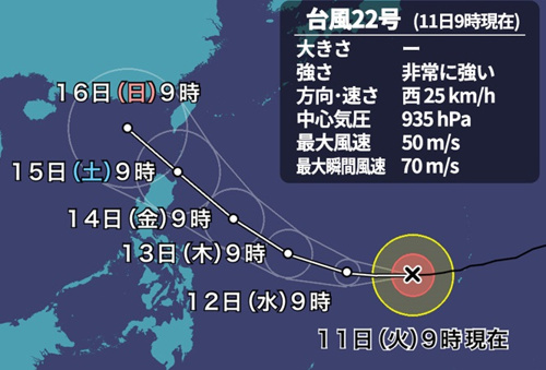 もう天災は懲り懲りだ~と台風22号の行方を見てみました。