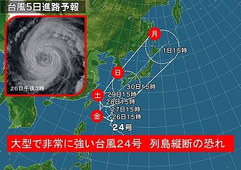 予想進路図を見ていると残念ながら日本列島縦断という最悪のコースです。