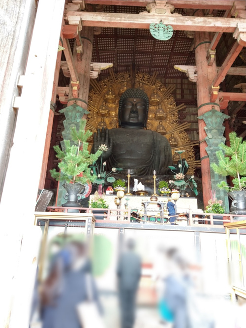 オブジェのような鹿と写真をとりつつ、東大寺大仏殿へ。