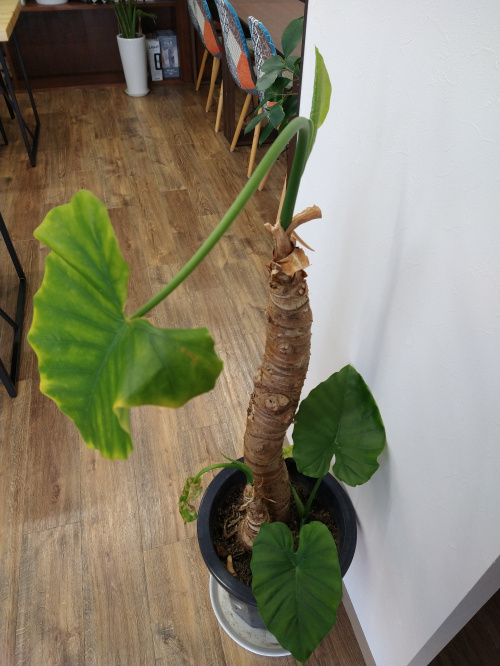 少し暖かくなったことを感知したのか、沈黙を守っていたくわずいもに新葉が出てきました‼このくわずいもは一番寂し時は葉が一枚しかなく、このまま枯れてしまうのかと思ったりしましたが、元気になれー!と日々声かけ水やりの調整をし、土が固くなって根が広がらないのかと根を傷めないように土を掘り起こして空気を入れたりと手入れしていました。そのかいあってか⁉最近は葉が増えてきて安心していたのですが、次の新葉がなかなか出てこず、出てくるのを心待ちにしていたところ…出てきましたー!ほっとしました。このまま暖かくなって欲しい所ですが、まだまだ1月…春になるにはもう少しかかるので、様子をみながら育てたいです。春になったらそろそろ植替えも考えないといけないなと思ってます。