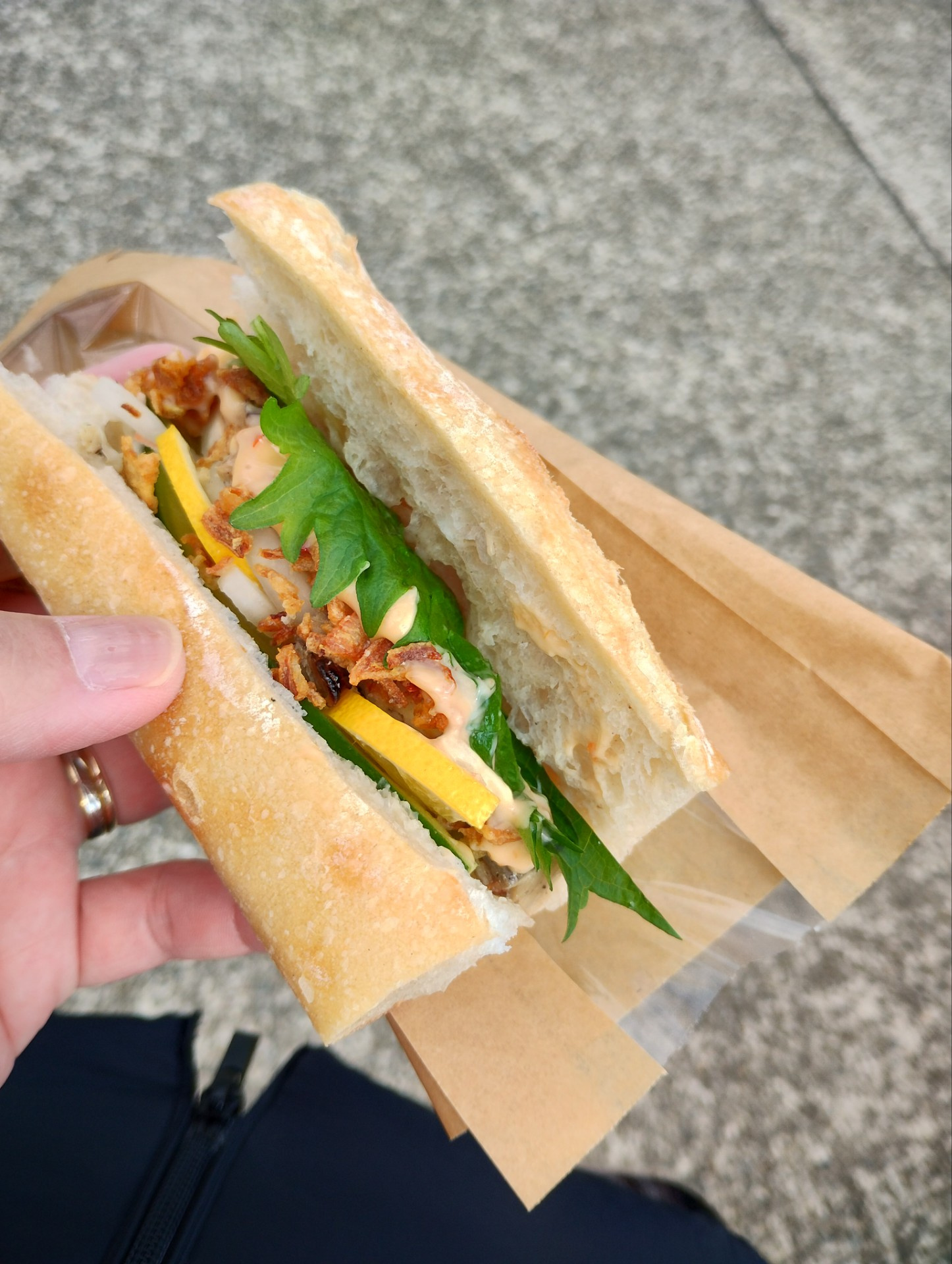 ちょうどお昼ご飯タイムという事もあり、普段食べるタイミングが余りないバインミーを購入。中に入っているサバがとても美味しくて、スモールサイズにしたことを少し後悔…レギュラーサイズでも全然いけた!
